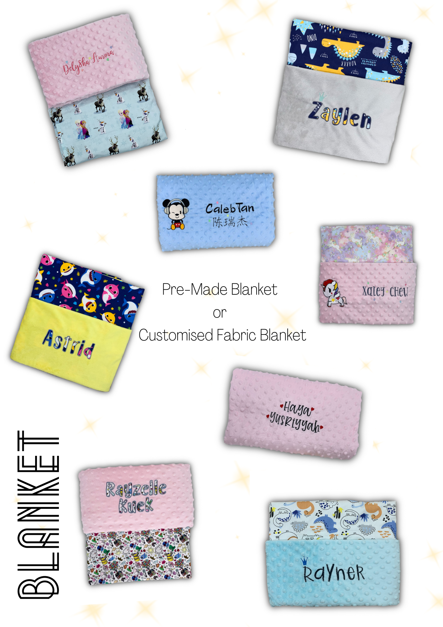 - Pre-Made Blanket : Ready made from supplier, we will just un-sew and do embroidery on, then sew back .